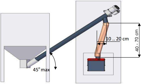 - The vertical distance between the output of external auger and burner has to be 400 – 700 mm.